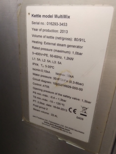 Volume of Kettle (net/gross): 80/90L