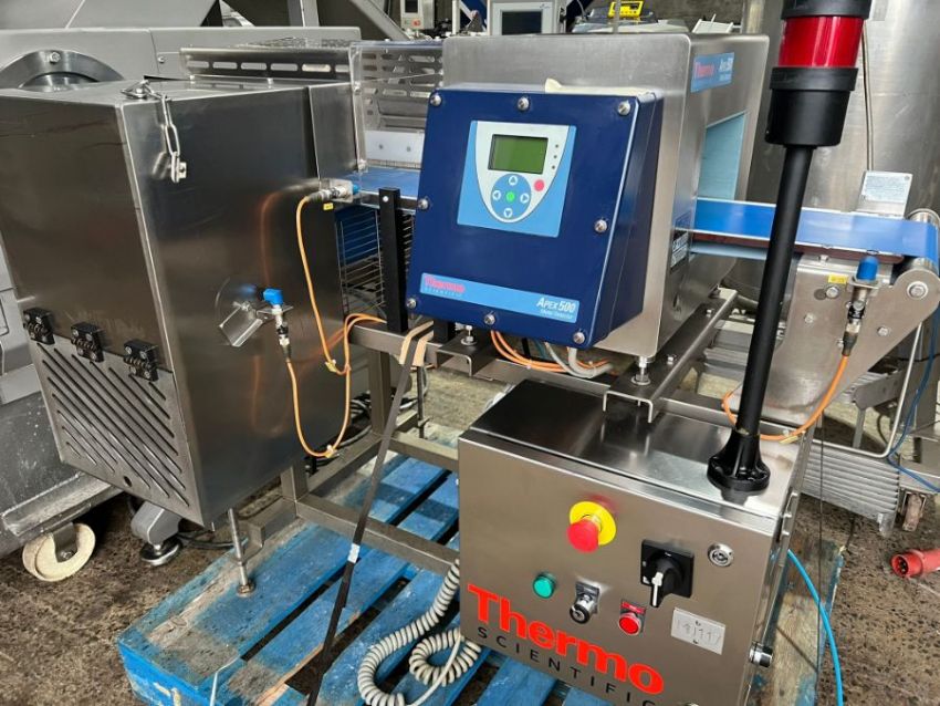 1 x Thermo Scientific Apex 500 metal detector with push-arm reject into lockable bin.