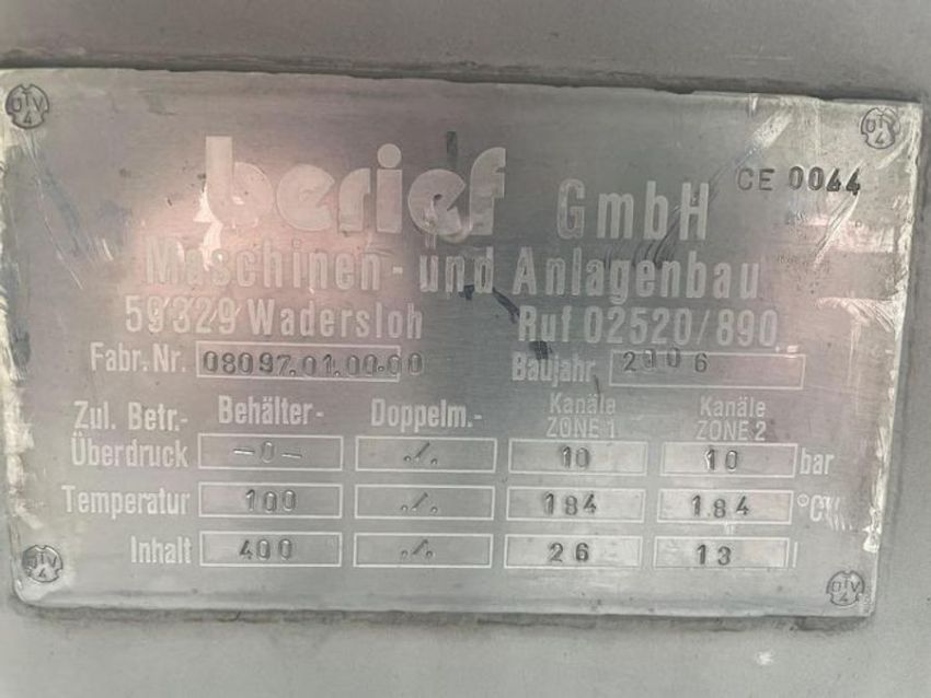 1 x Berief kippko cooking/roasting kettle, Tiltable cooking and roasting kettle, steam heated, tipping bowl to empty, approx. 400 litres capacity, ideal for rice, ready meal production, soups, desserts, potato processing etc. UKFM2-3161