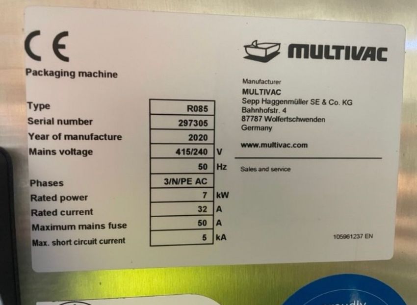1 x Multivac R085 compact thermoformer.