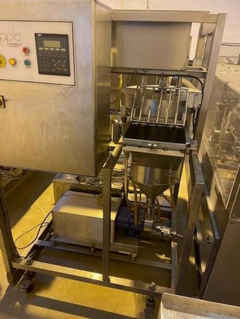 1 x Apple fondant depositor, Pressurized fondant depositor, HMI Screen, 12 nozzle depositing manifold, Ideal for bakewell tart type product. Lift Out £50. UKFM2- 3157