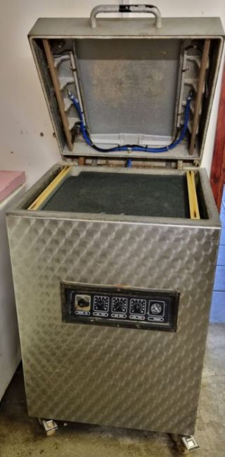 1 x Turbovac single chamber vacuum packing machine. Fitted with Busch R 063 vacuum pump. Model - SB500KK (floor standing). Sealing bars - 2 x bars, each measuring 510mm. Distance between sealing bars - 510mm. Chamber depth - 100mm maximum. Electric supply - 230v / 50hz / 1 ph. Power - 2.8kW. Video available on request. Located in Melksham, Wiltshire. Lift Out Charge - £50. UKFM1-3039